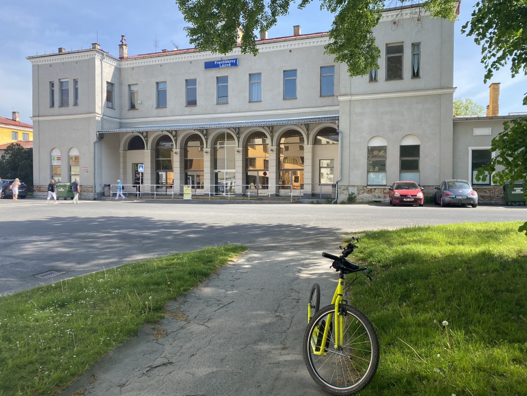 Hned od nádraží vyrazíte kolmo k trati mírně z kopečka podél stromů, po 200 metrech vjedete do Městského sadu, který projedete napříč, nebo si ho můžete cik-cak projet. U Františkova altánu odbočíte doleva a záhy dorazíte na kraj Sadů Bedřicha Smetany. Opět si park můžete projet, samozřejmě s respektech k lázeňským hostům a dalším návštěvníkům. Parky jsou ale natolik rozlehlé, že frekvence korzujících není velká.